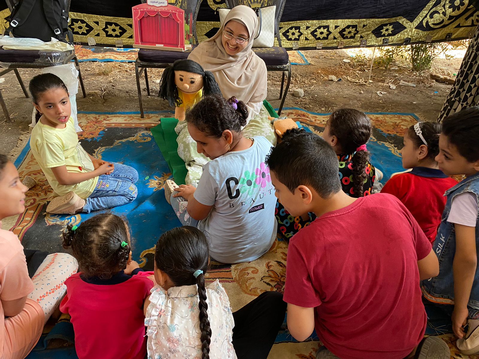 - ورشة الحكي باستخدام مسرح الحكايات لتعزيز مهارات الاستماع والخيال.