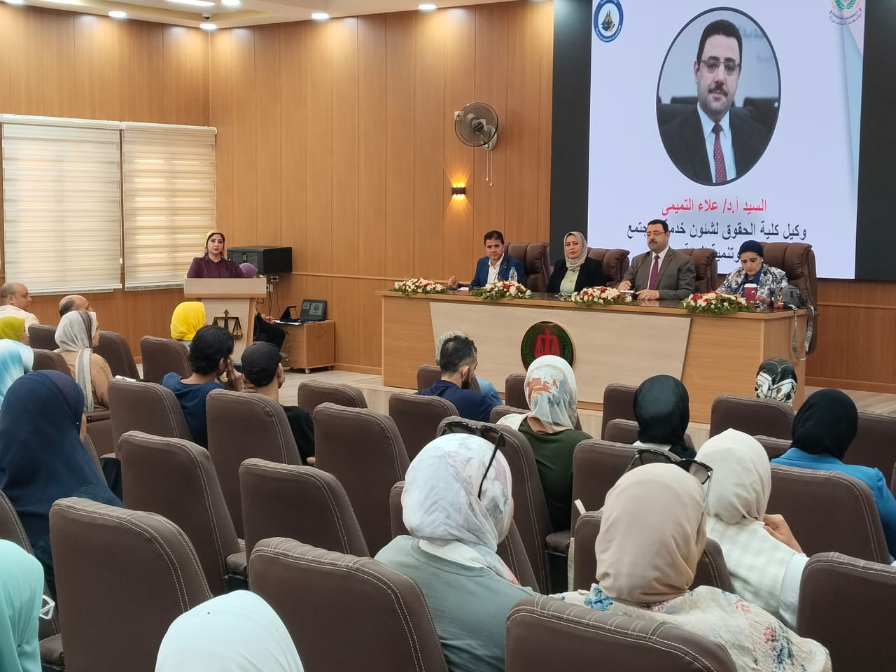 Prof. Dr. Alaa Al-Tamimi then delivered a speech welcoming the attendees and commending the role of the initiative in raising awareness and introducing legal means of self-protection and legal deterrence of offenders. He also emphasized the role of the General Administration for Environmental Projects in launching such important and educational initiatives that benefit faculty, staff, and students.