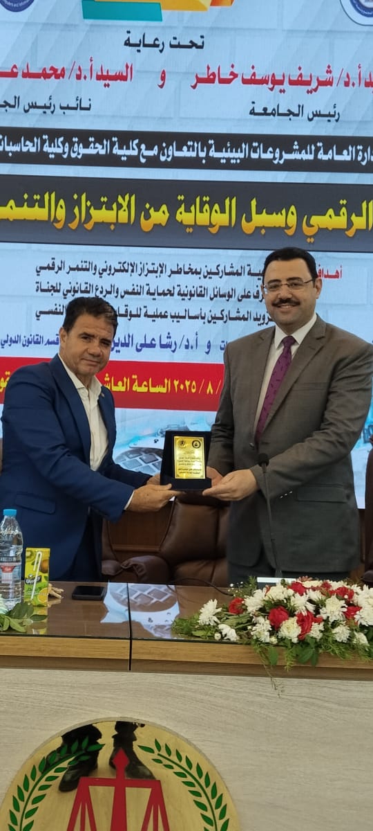 The General Administration for Environmental Projects in the Community Service and Environmental Development Sector, in cooperation with the Faculty of Law and the Faculty of Computers and Information at Mansoura University, organized an initiative titled “Digital Safety and Ways to Prevent Electronic Blackmail and Cyberbullying” on Monday, August 11, 2025.