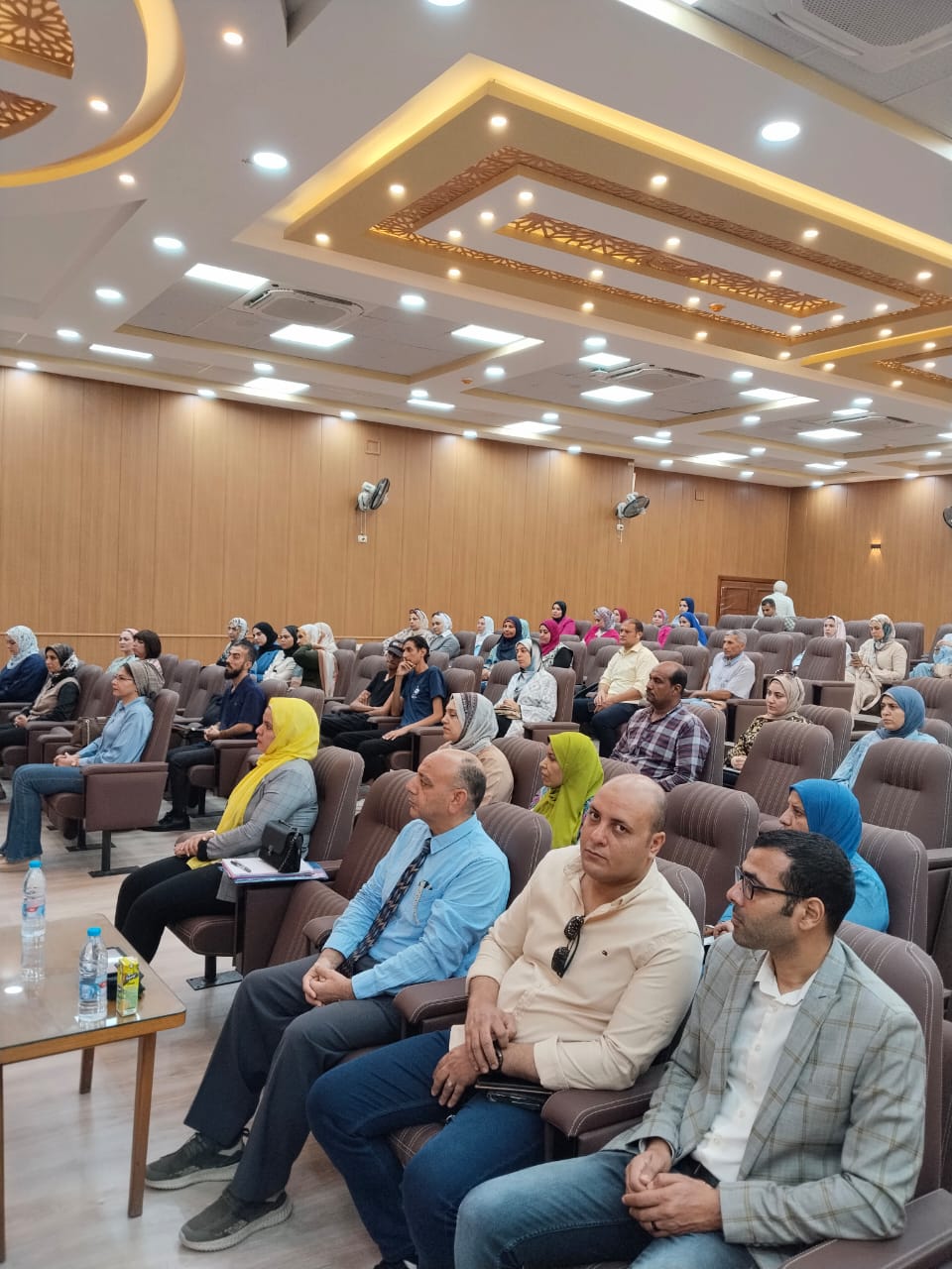 In addition to a number of faculty members, staff of the university and university hospitals, and 77 participants from various university sectors representing the Faculties of Law, Computers and Information, Nursing, Education, Early Childhood Education, Tourism and Hotels, Medicine, Agriculture, Fine Arts, Commerce, as well as several hospitals, medical centers, and administrative units of the university, along with students.