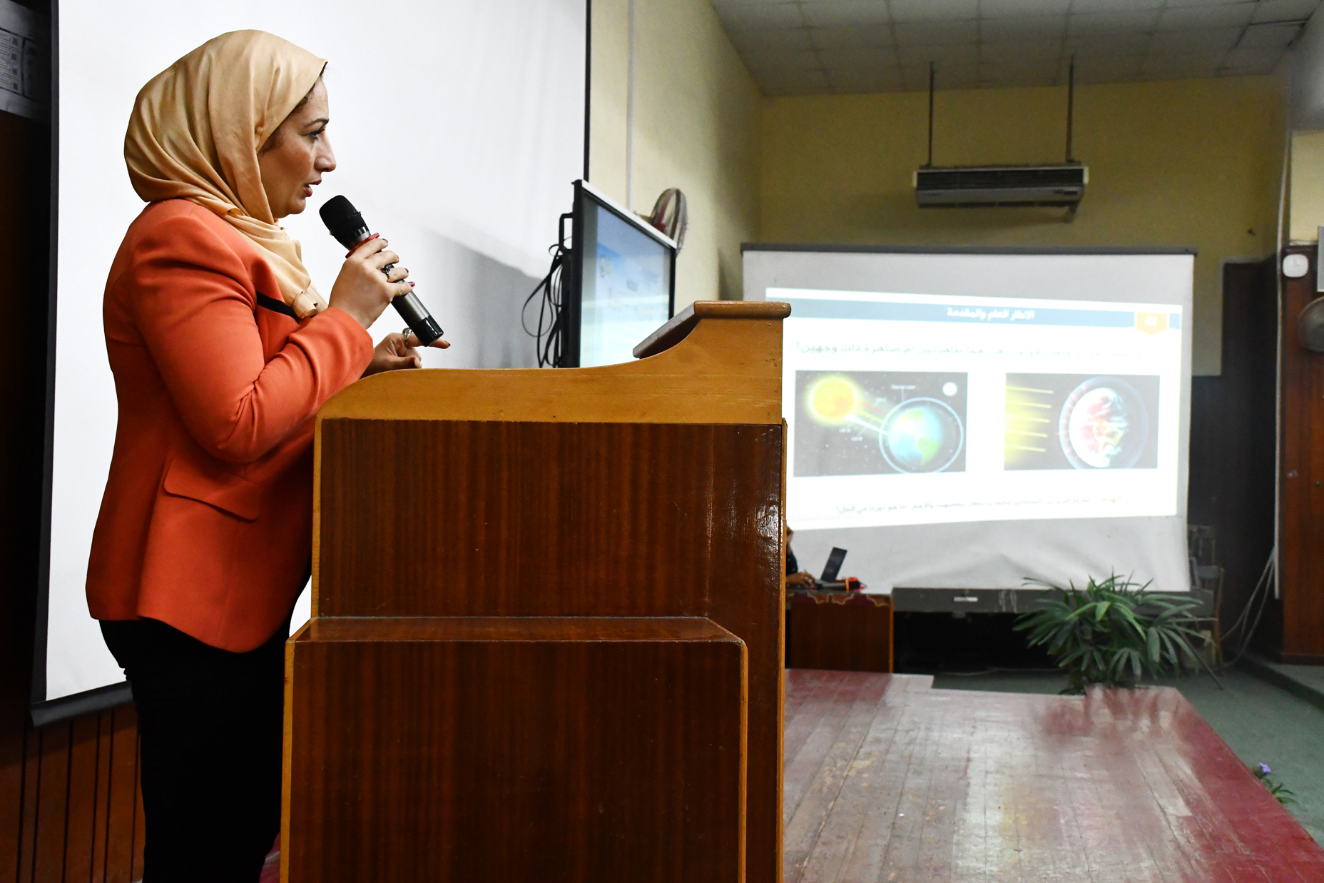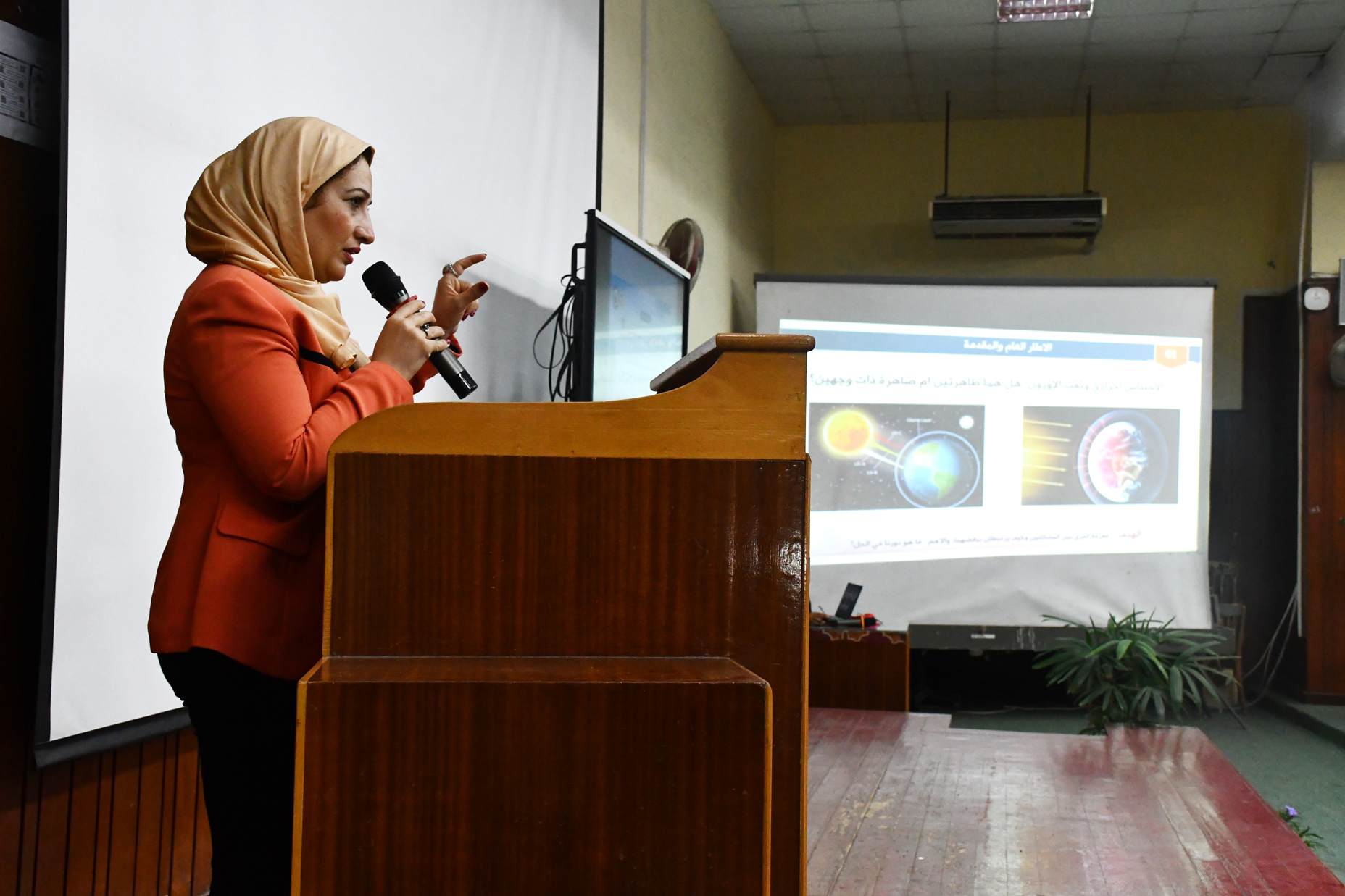 ✦ Prof. Dr. Zeinab Abu El-Naga – Professor of Environmental Sciences at the Faculty of Science and Director of the University’s Environmental Impact Assessment Center, presented a lecture on the link between global warming and the ozone hole. She explained how rising greenhouse gas emissions exacerbate global warming, affecting atmospheric dynamics and contributing to ozone depletion. She highlighted the severe consequences of these phenomena, such as rising temperatures, recurring droughts and floods, and threats to biodiversity. She emphasized the importance of adhering to international agreements like the Montreal Protocol and promoting societal awareness as well as daily practices that reduce carbon footprints and support ozone protection.