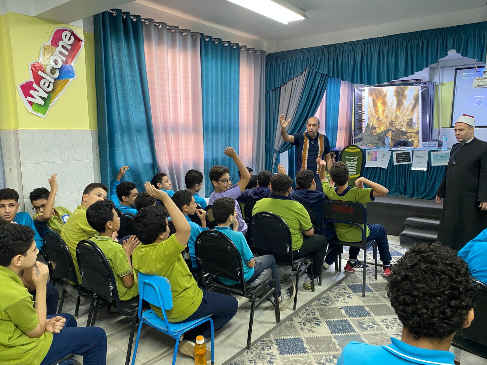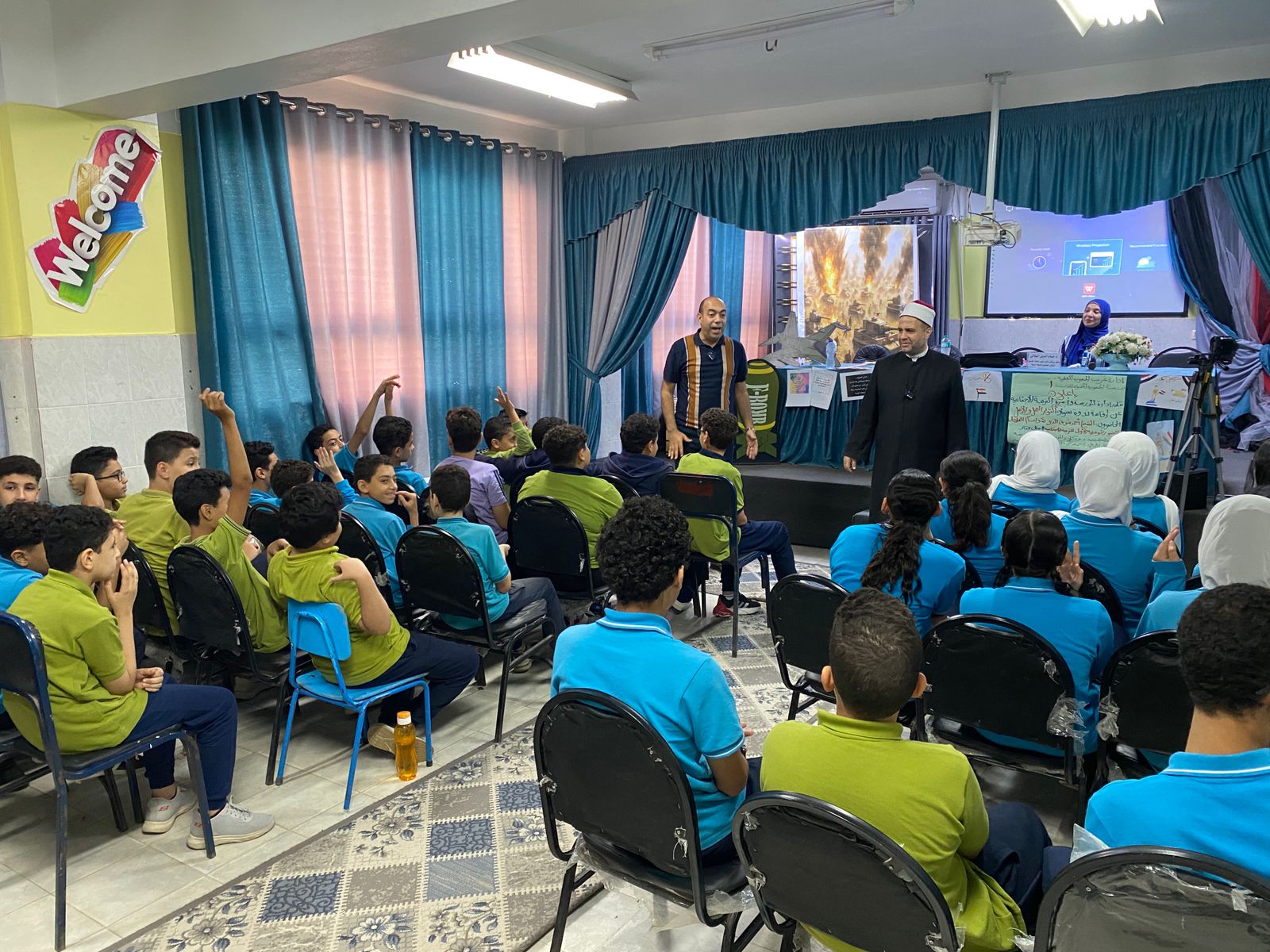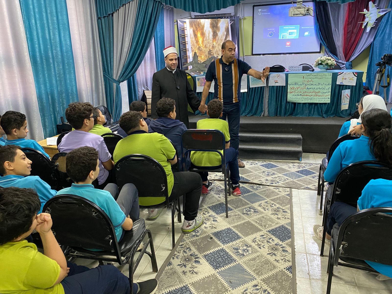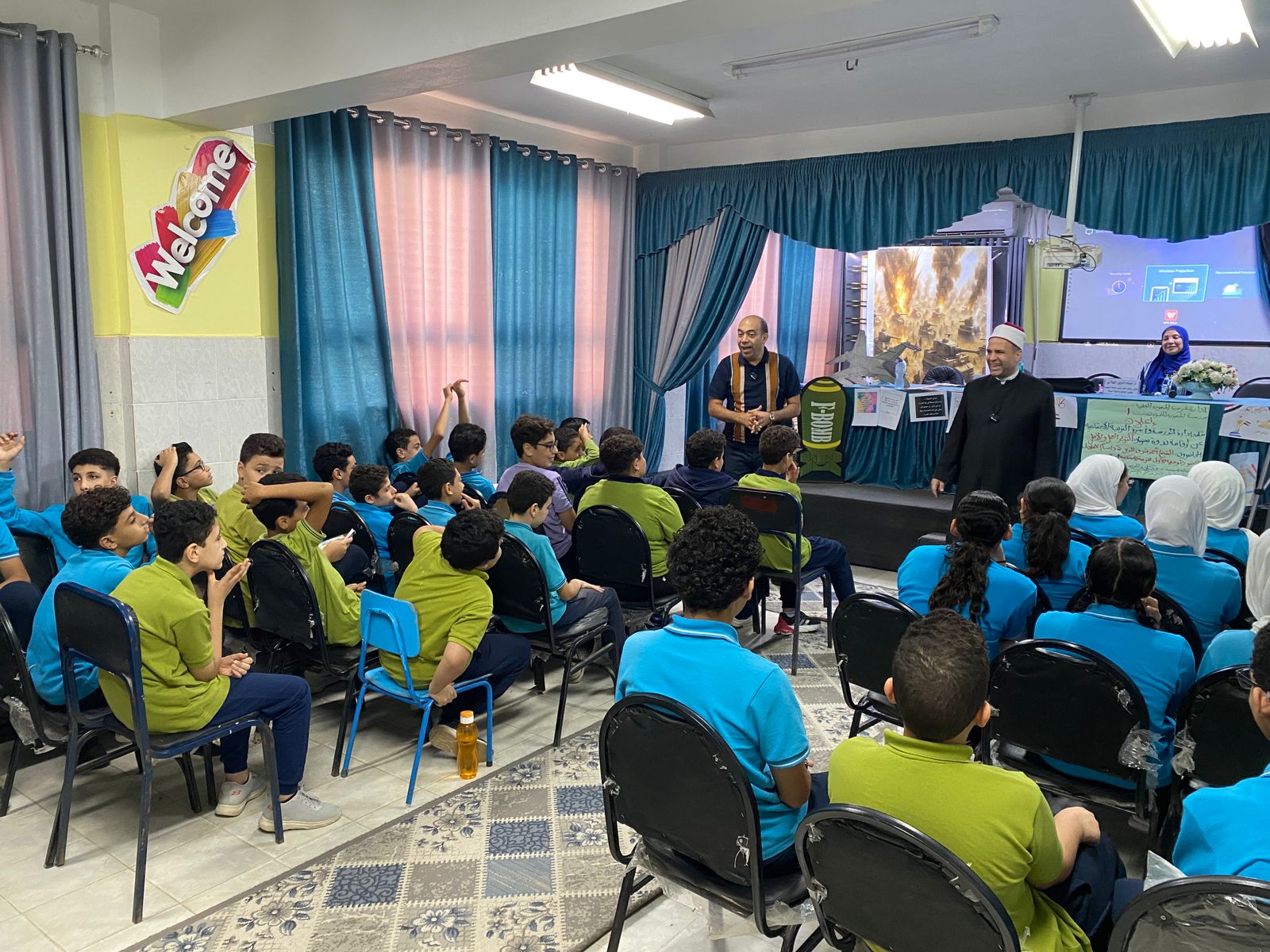 A seminar on the October War and national belonging at the “Motamayeza 1” School on Thanawiya Street in Mansoura.