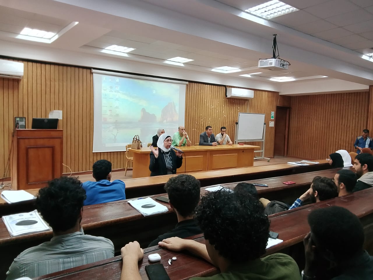 Under the patronage of Prof. Dr. Sherif Khater, President of Mansoura University, and the leadership of Prof. Dr. Mohamed Abdel Azim, Vice President for Community Service and Environmental Development, the event was organized by the Volunteer House at Mansoura University, in cooperation with the General Administration of Environmental Projects led by Eng. Sherif Fawzy and his team, and the Faculty of Pharmacy, under the patronage of Prof. Dr. Manal Eid, Dean of the Faculty, and the leadership of Prof. Dr. Hany Qenawy, Vice Dean for Community Service and Environmental Development. The seminar was supervised by Prof. Dr. Sahar Abdel Aziz El-Dekrory, General Supervisor of the Volunteer House and Preventive Programs of the Addiction Control Fund at Mansoura University.
