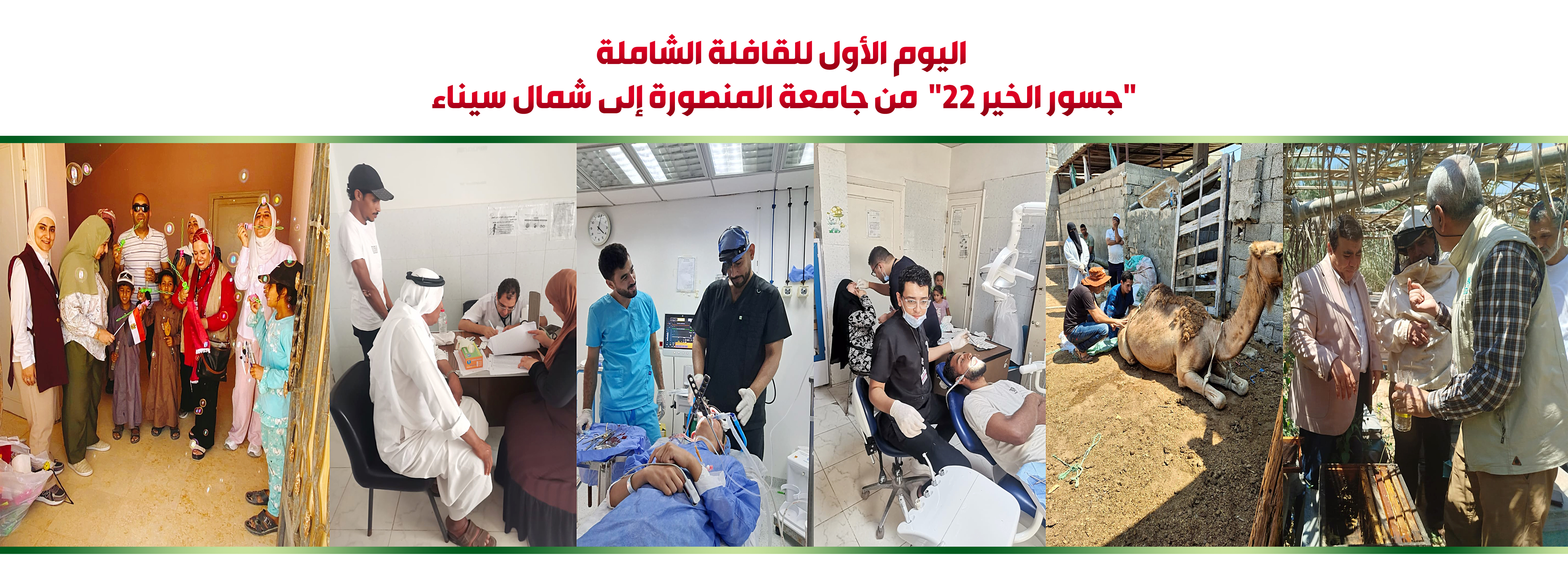 وعضوية الأستاذ الدكتور عبدالناصر أحمد استشاري الأمراض الباطنة والدكتور محمد البحراوي مدرس الجراحة و الدكتور محمد المنسي مدرس مساعد الأمراض الباطنة حيث تم توقيع الكشف الطبي على أكثر من ١٢٥ رأس من الابل في منطقة وعدد ٢٩٠ رأس من الأغنام والماعز وتم صرف العلاج والتحصينات لجميع الحيوانات المريضة بالمجان من الصيدلية البيطرية للقافلة وكذلك تقديم التوعية والارشادات اللازمة للمربيين بهذه التجمعات.