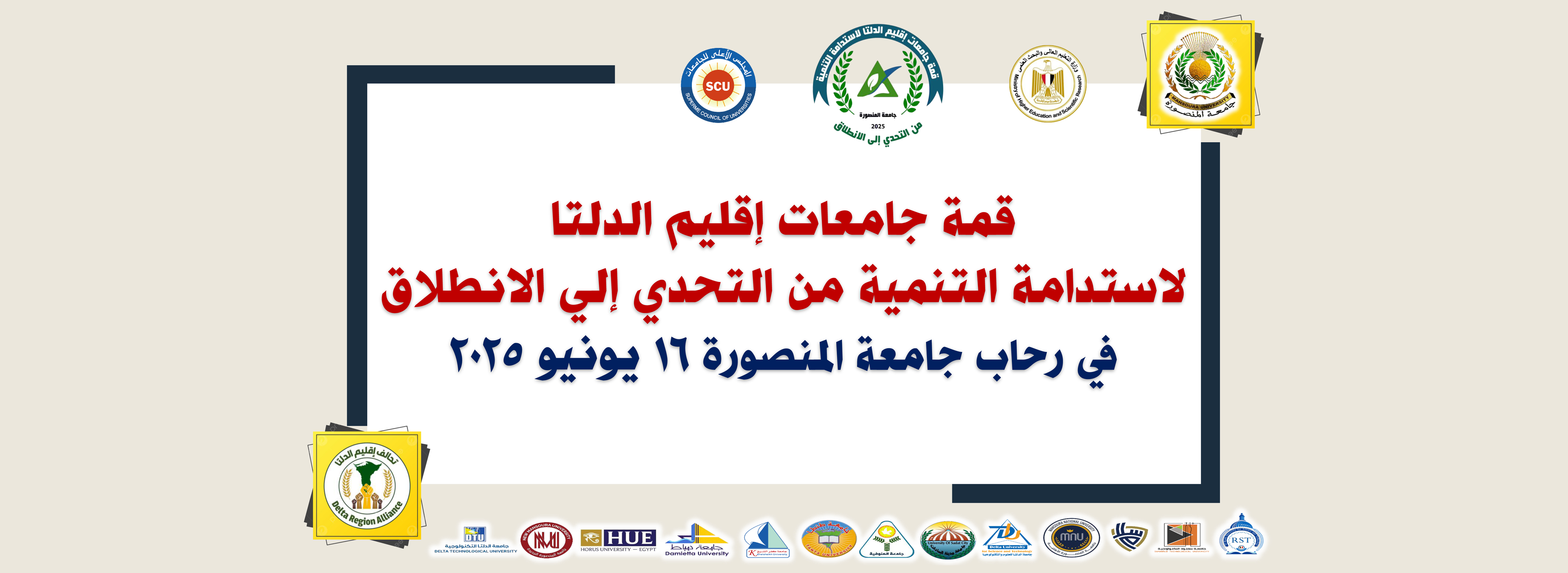 تحت رعاية الأستاذ الدكتور/ شريف خاطر - رئيس جامعة المنصورة، و الأستاذ الدكتور / محمد عبد العظيم - نائب رئيس الجامعة لشؤون خدمة المجتمع وتنمية البيئة،