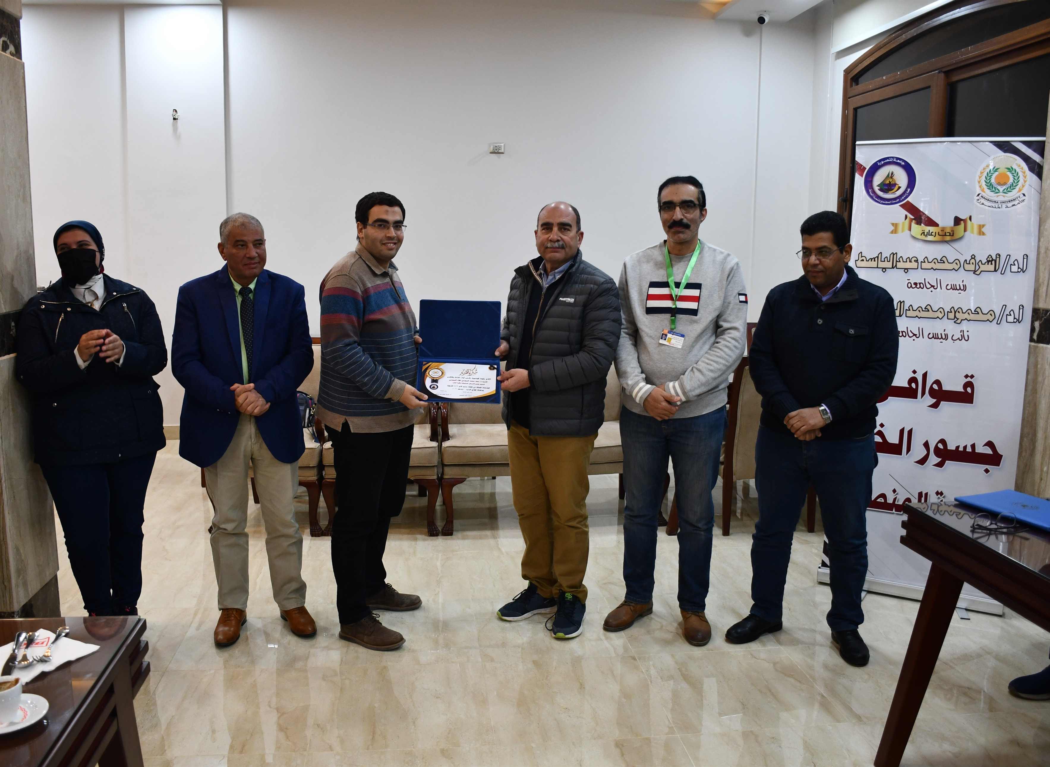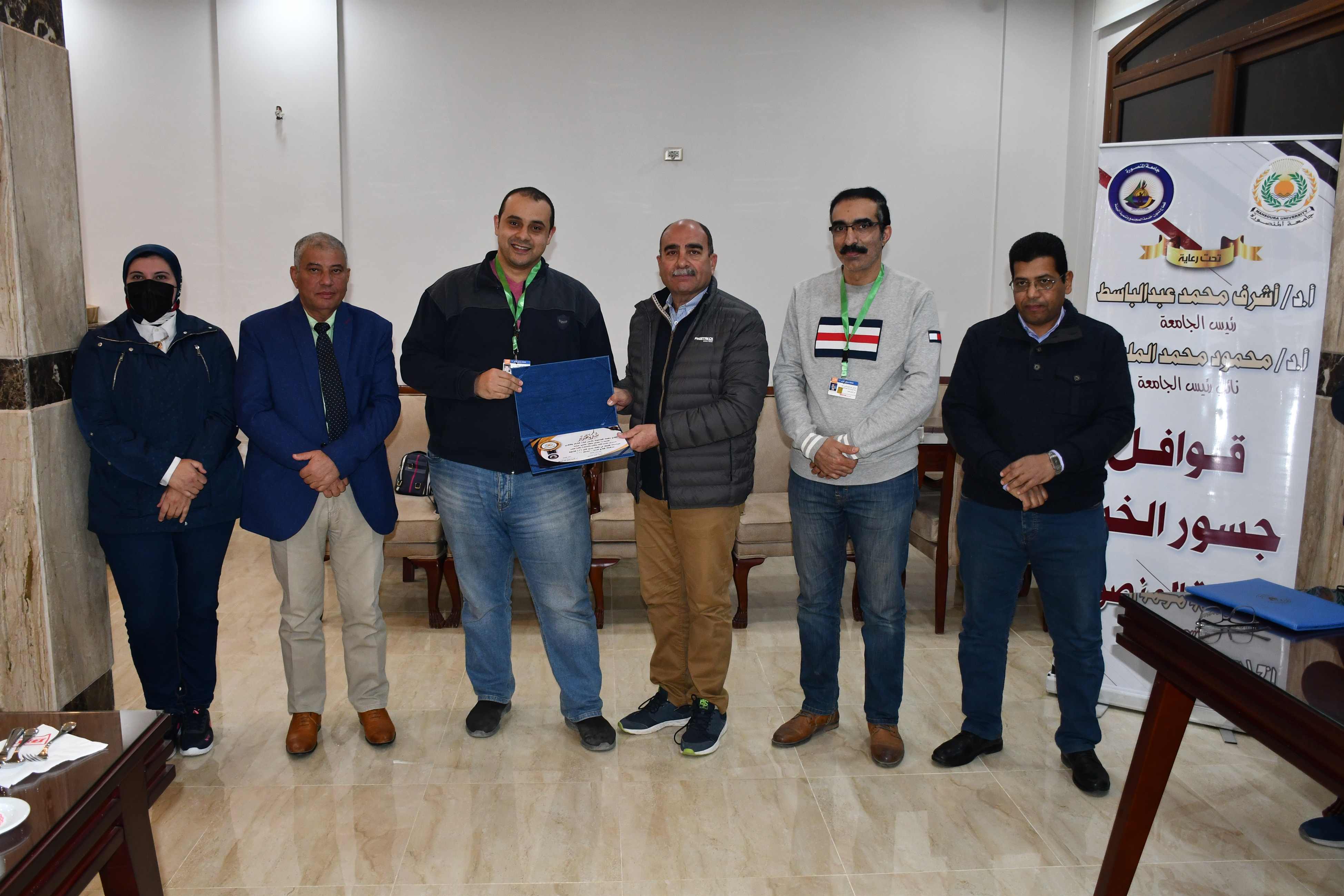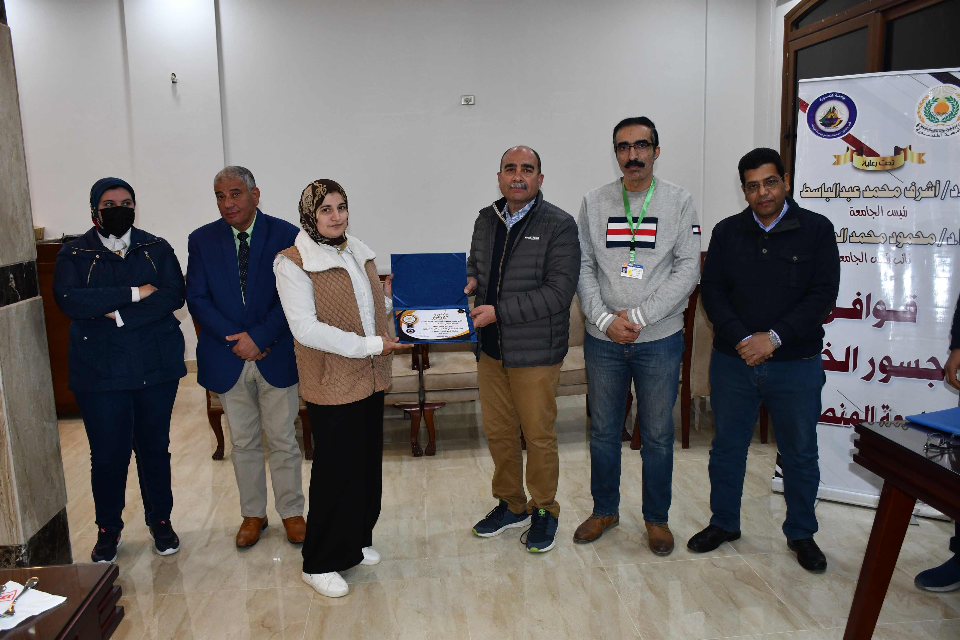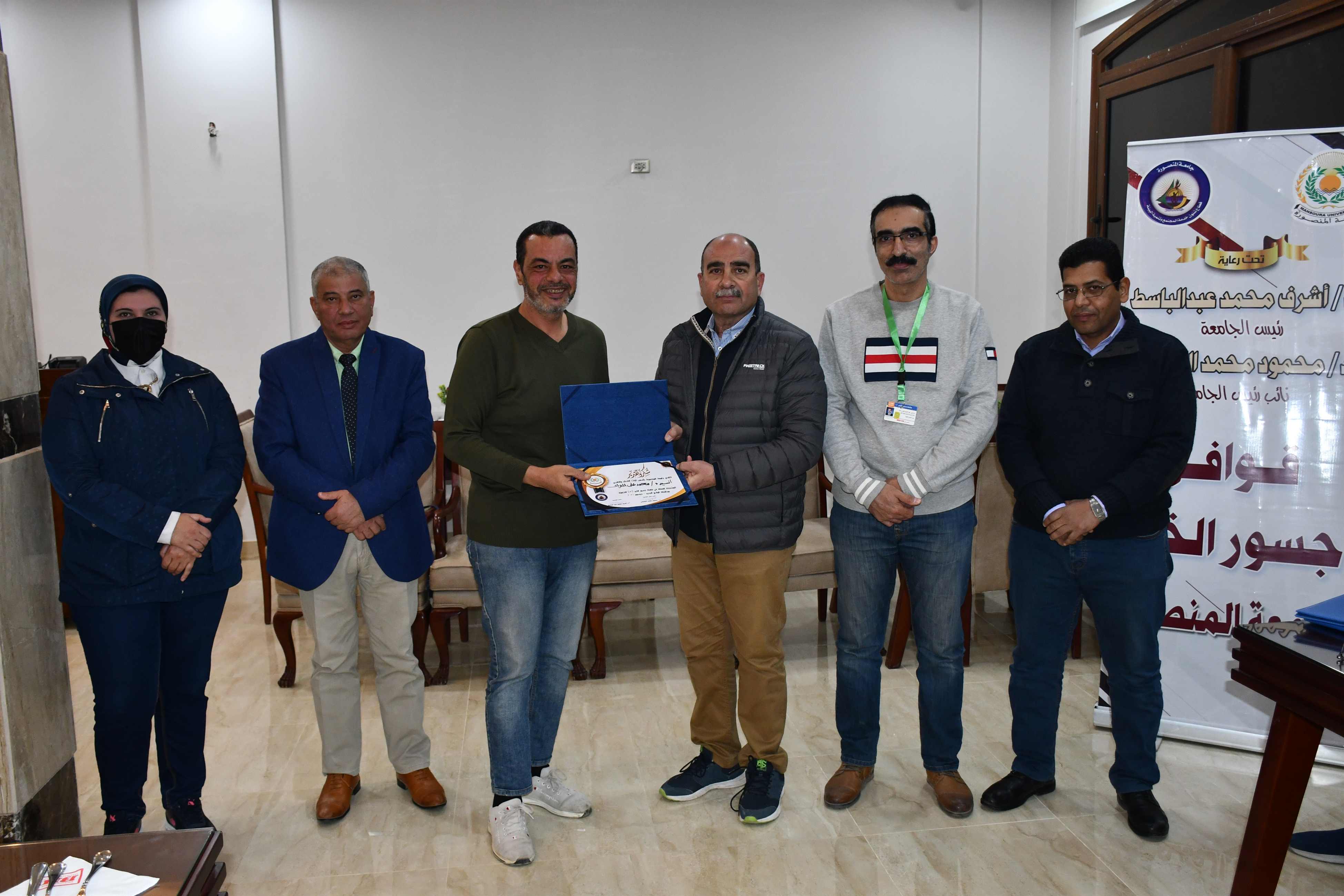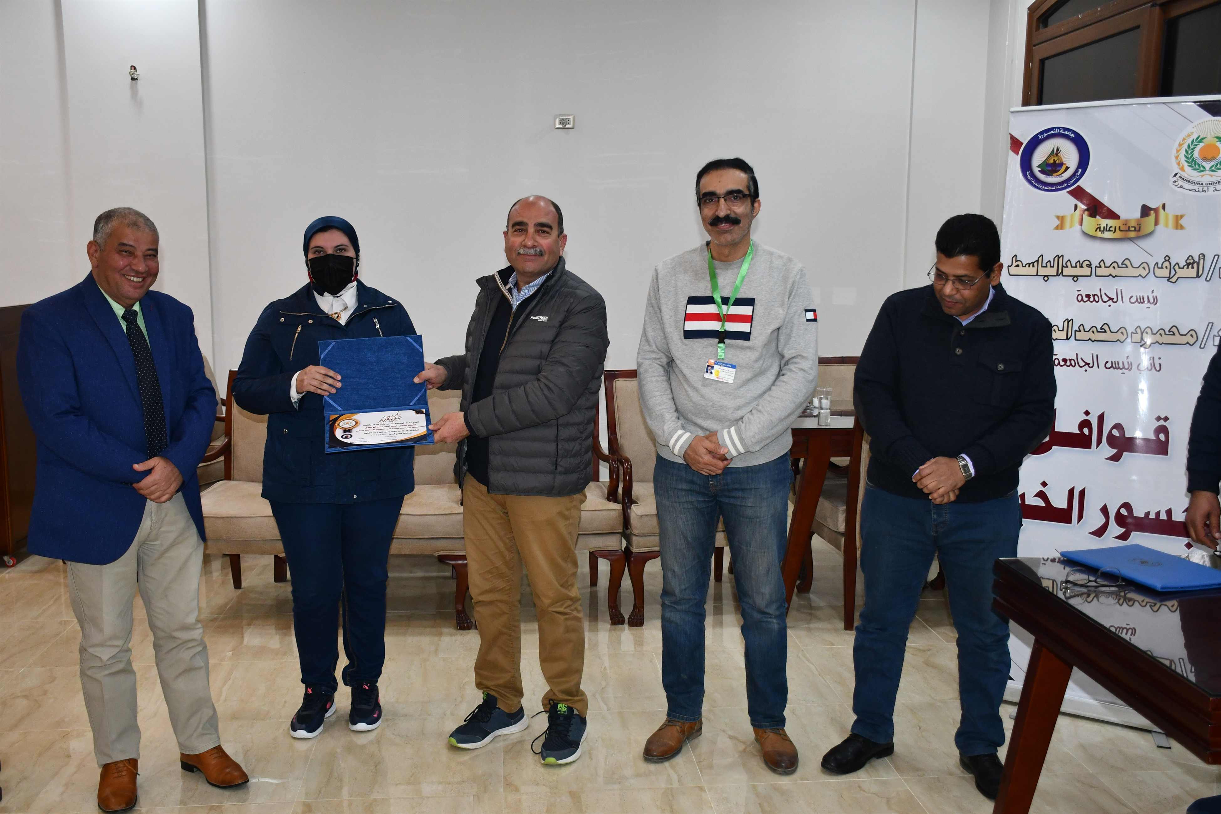 قام السيد أ.د/ محمود المليجي بتكريم السادة أعضاء القافلة من فريق الطب البشري والطب البيطري والصيادلة وفريق مركز رعاية وتنمية الطفولة والإداريين نظراً لما قدموه من جهود عظيمة ساهمت في نجاح فعاليات القافلة، والمكون من السادة التالي أسمائهم: -