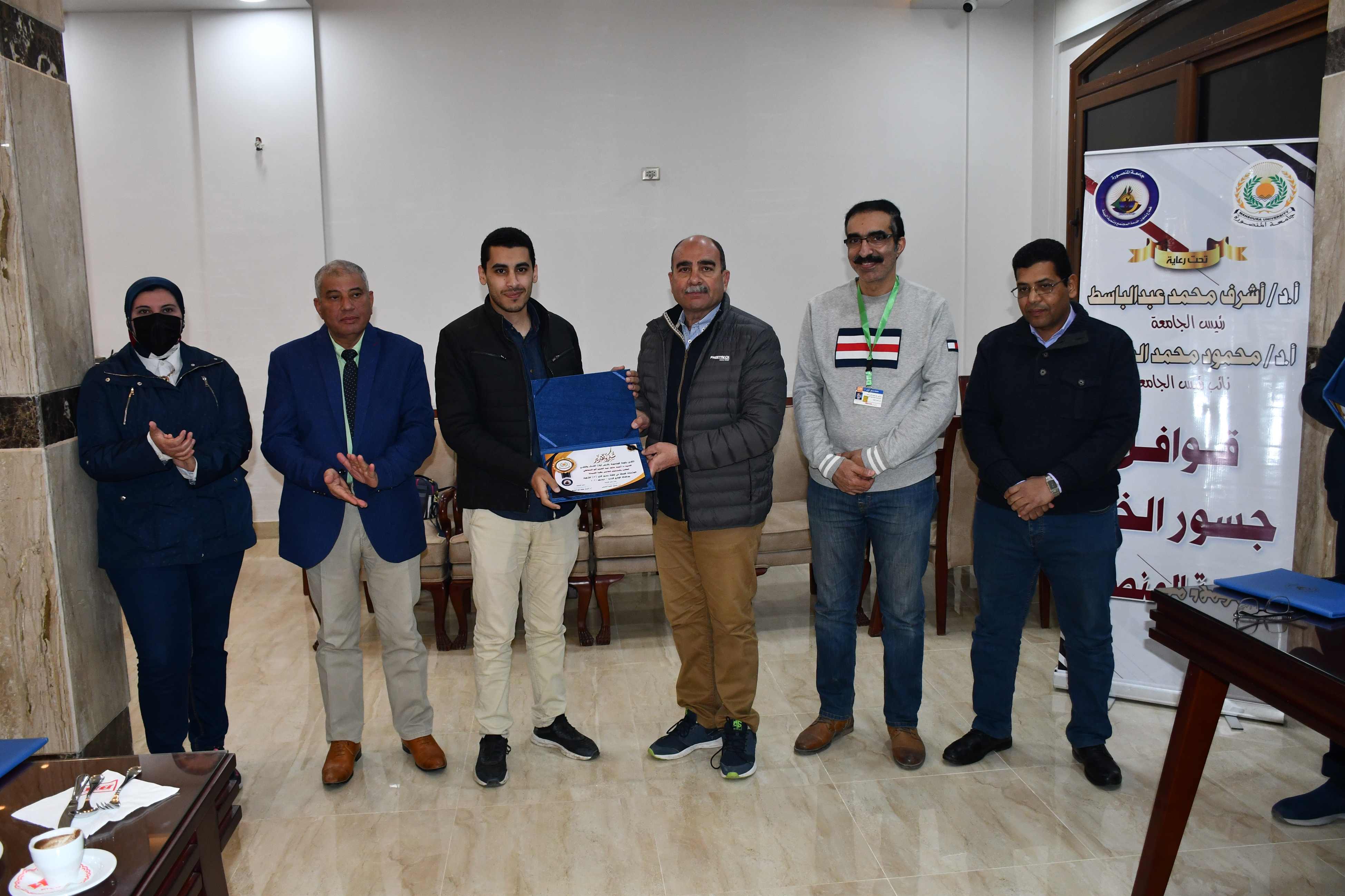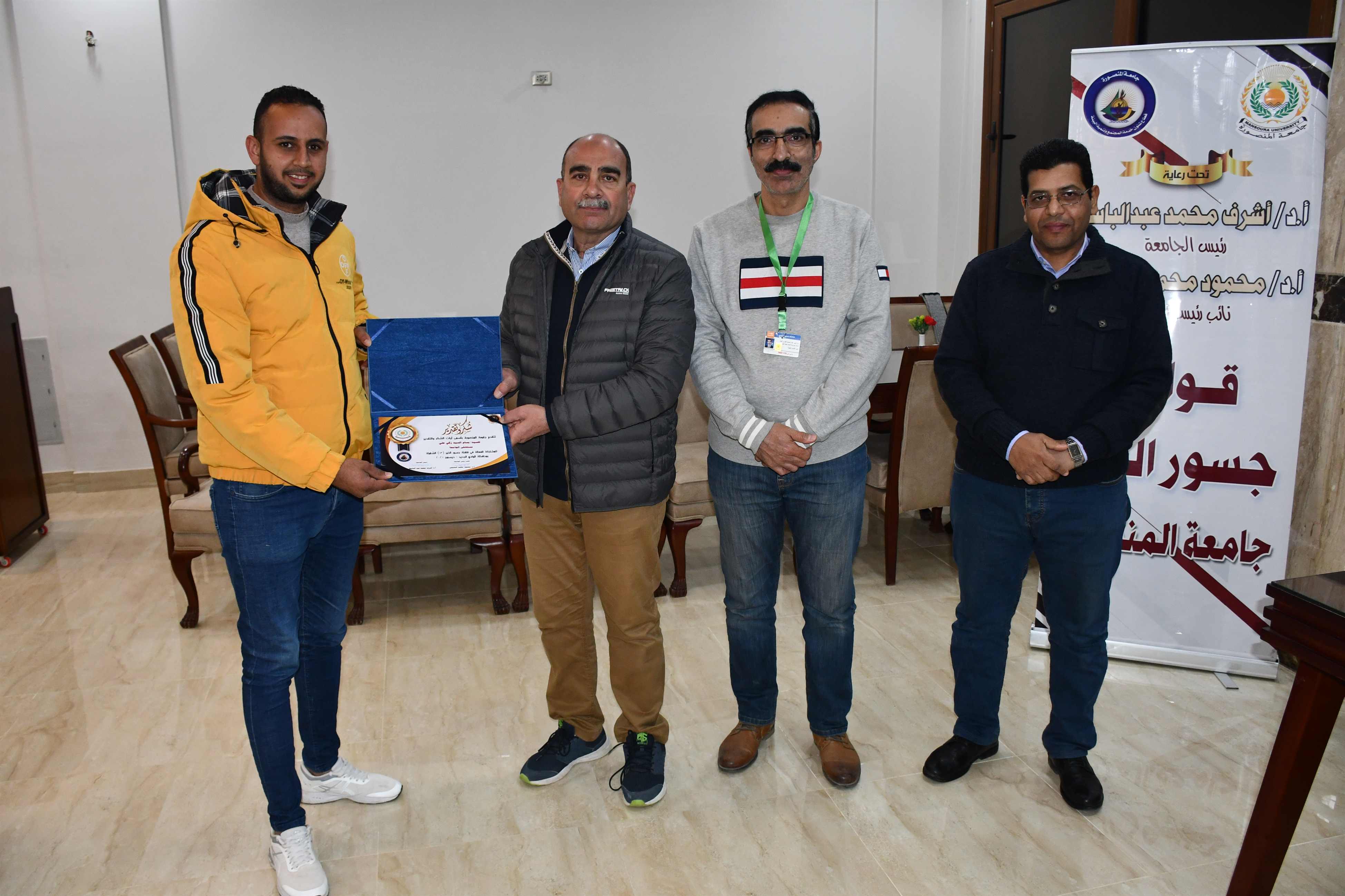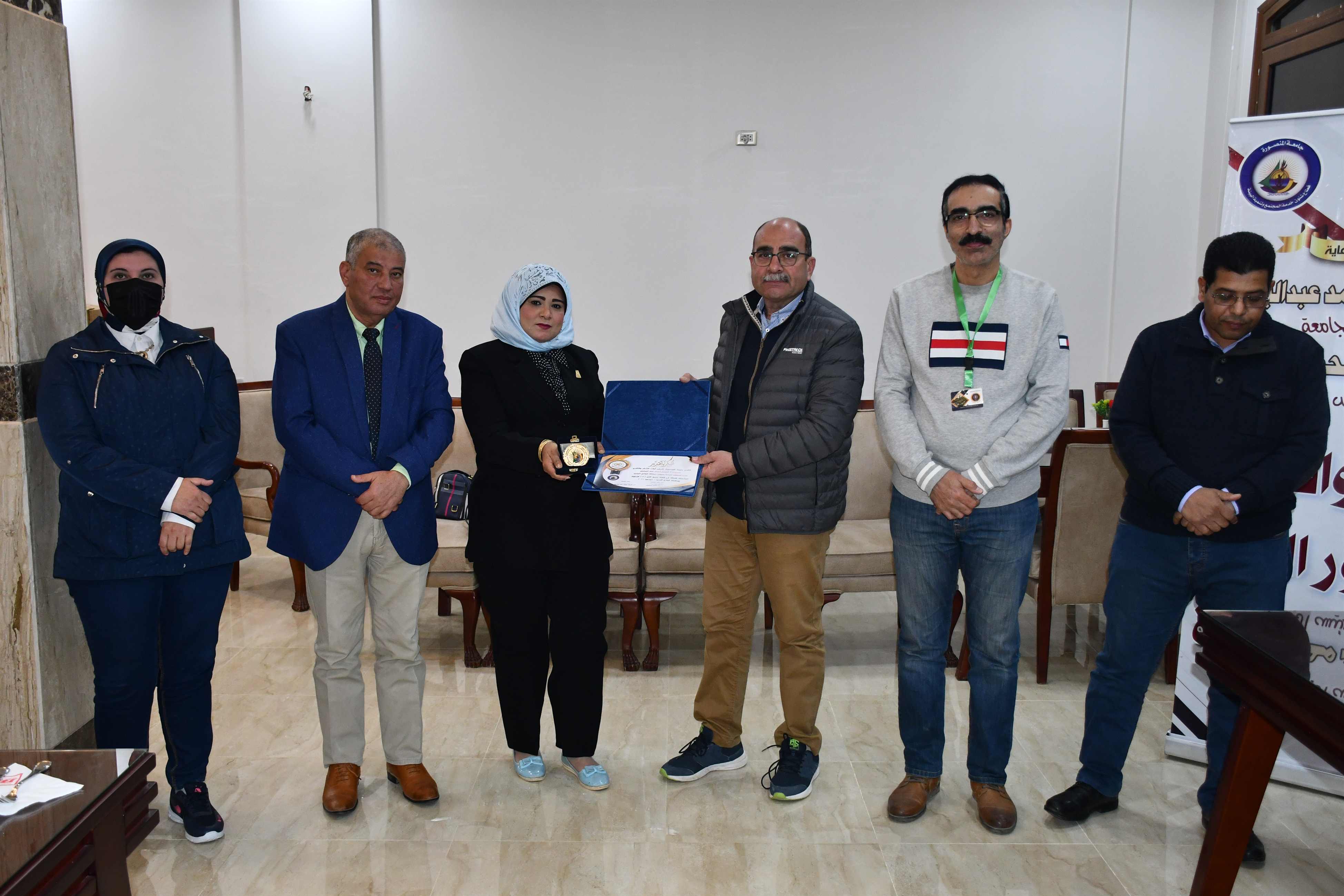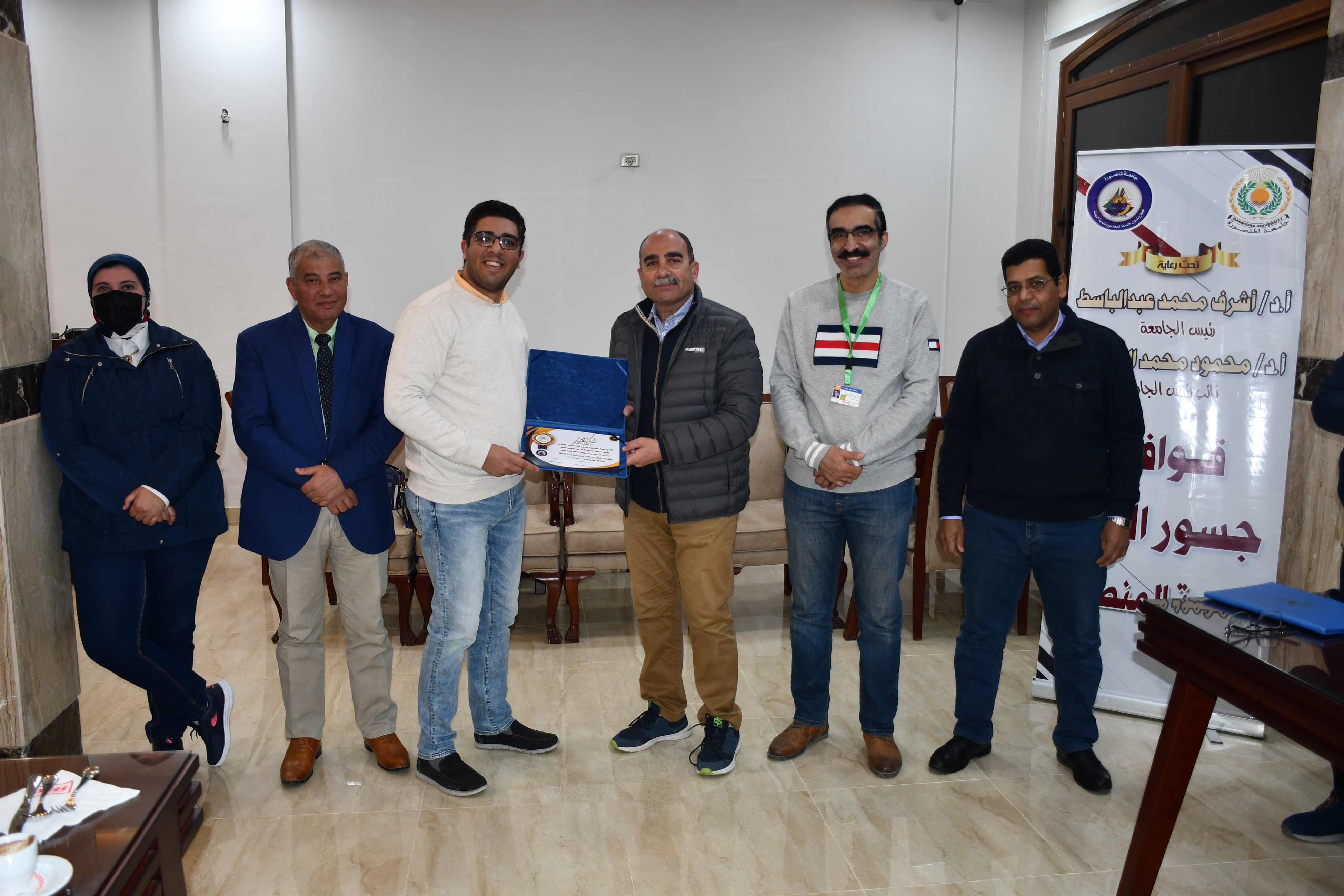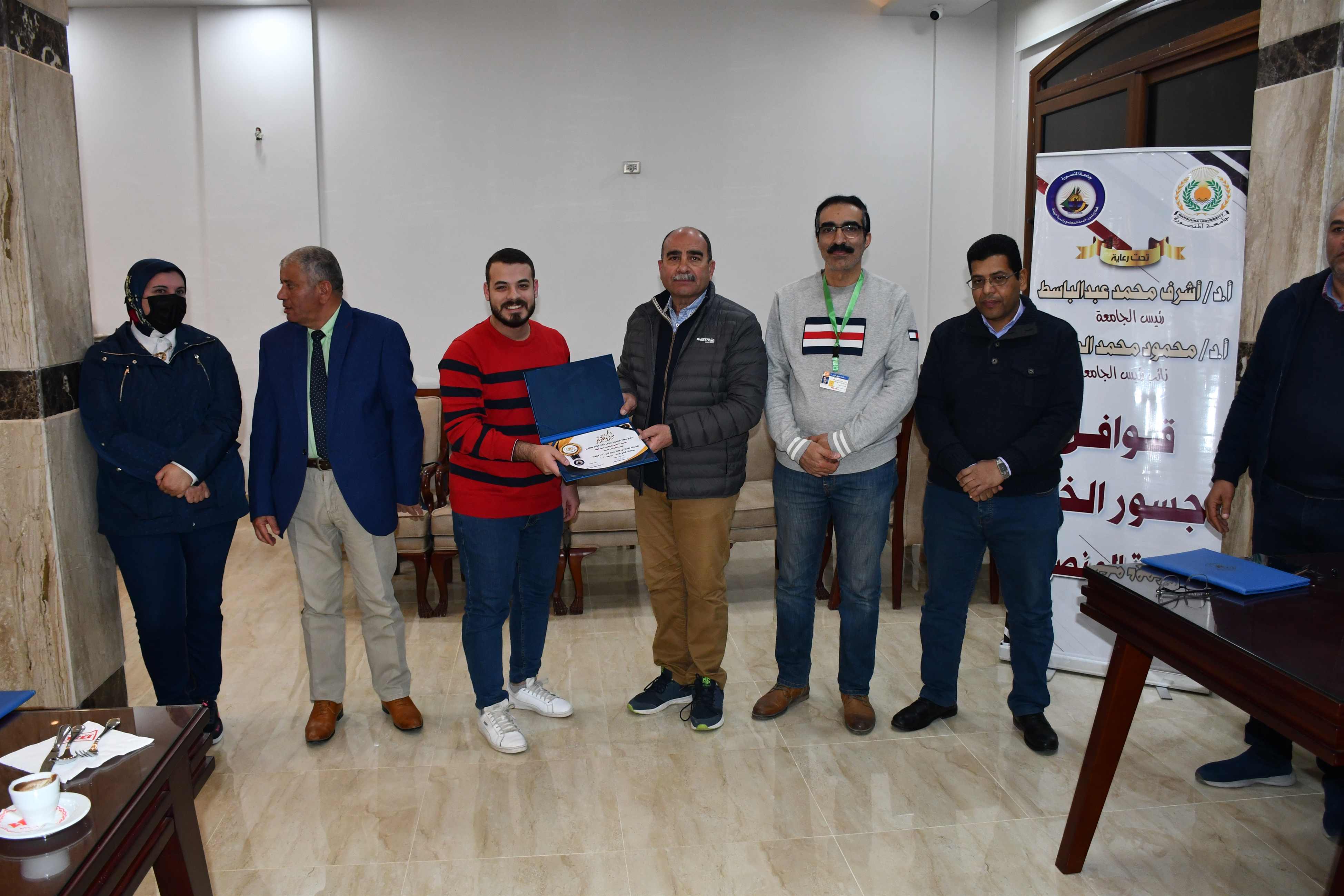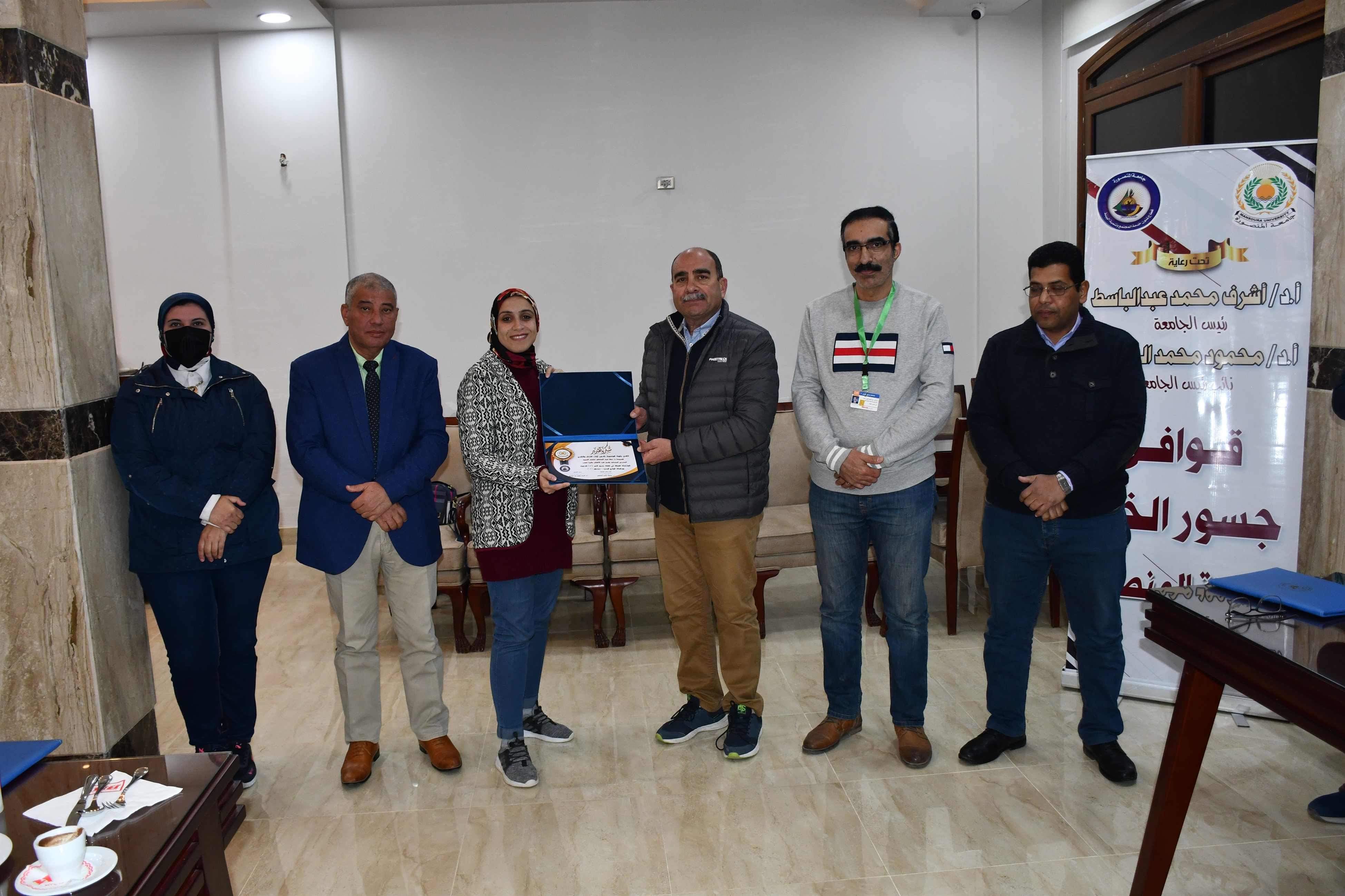 قام السيد أ.د/ محمود المليجي بتكريم السادة أعضاء القافلة من فريق الطب البشري والطب البيطري والصيادلة وفريق مركز رعاية وتنمية الطفولة والإداريين نظراً لما قدموه من جهود عظيمة ساهمت في نجاح فعاليات القافلة، والمكون من السادة التالي أسمائهم: -