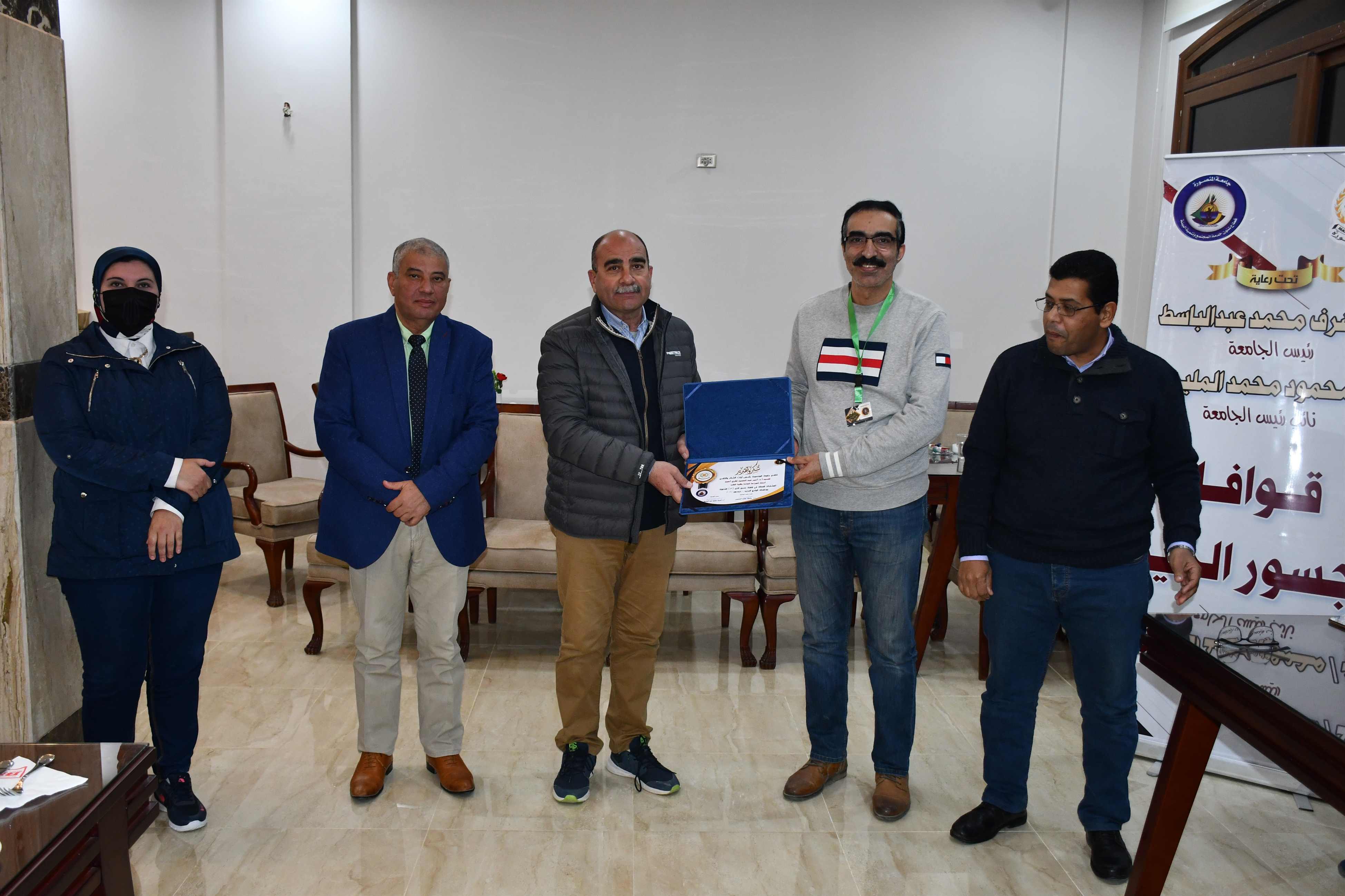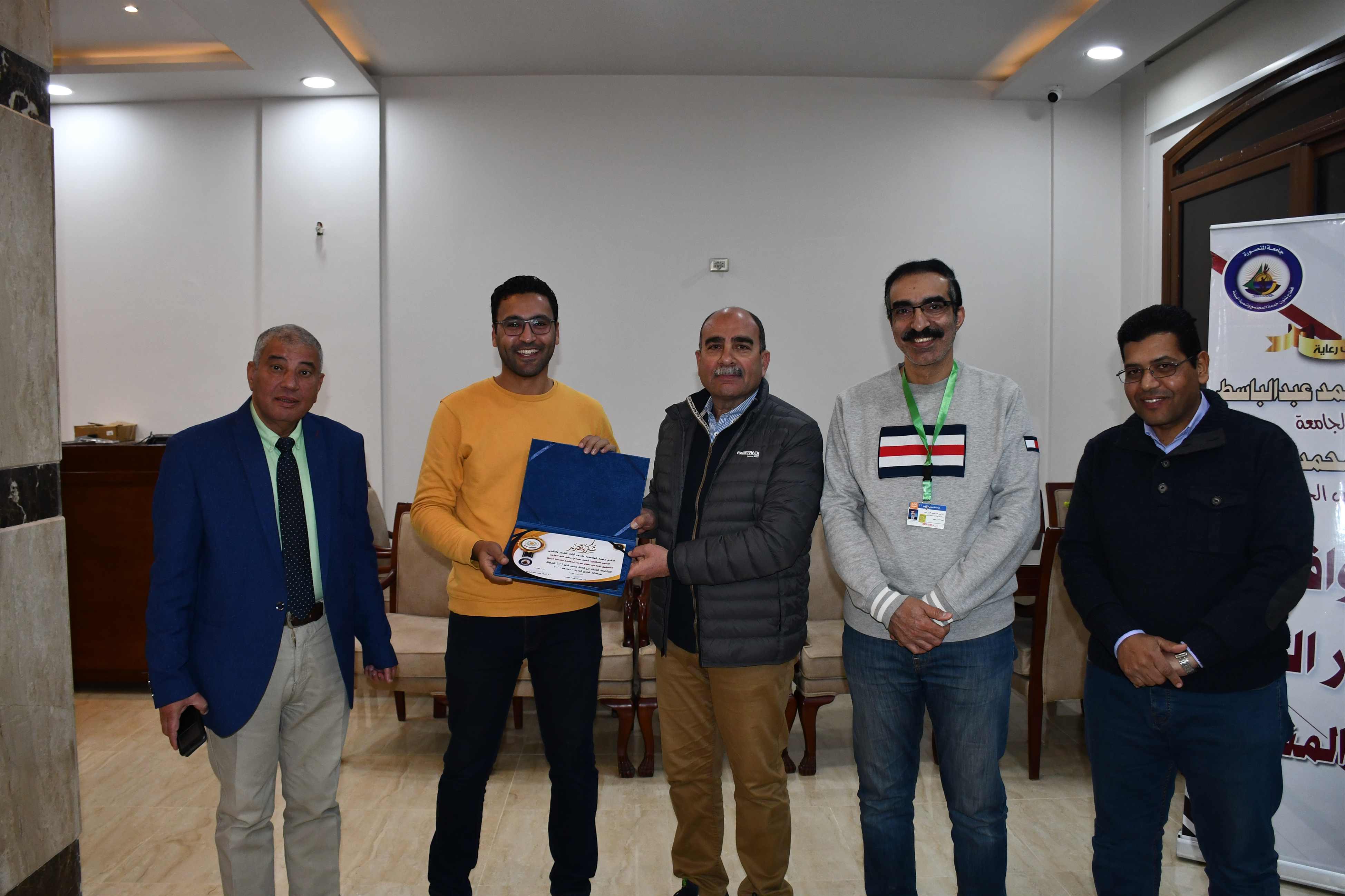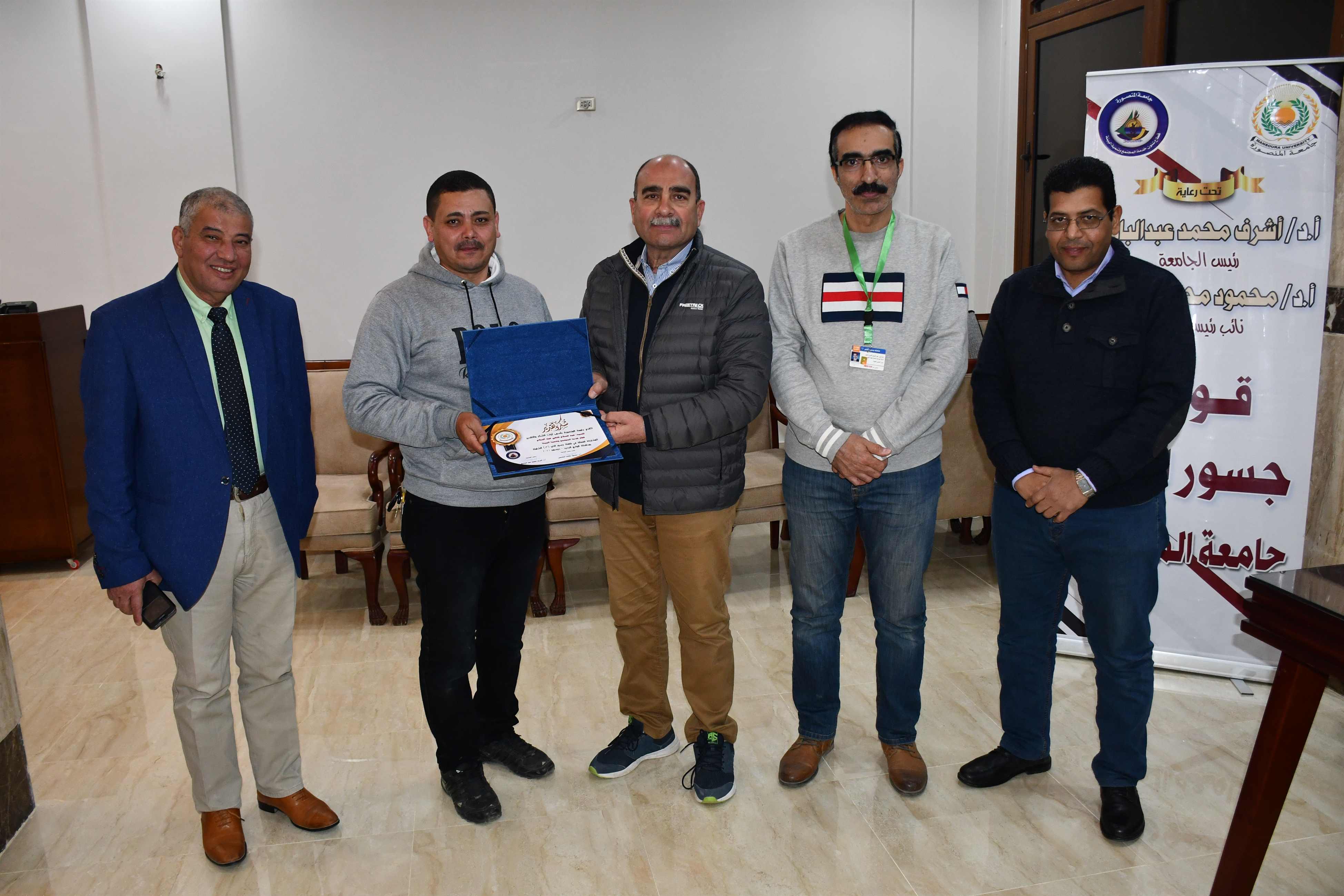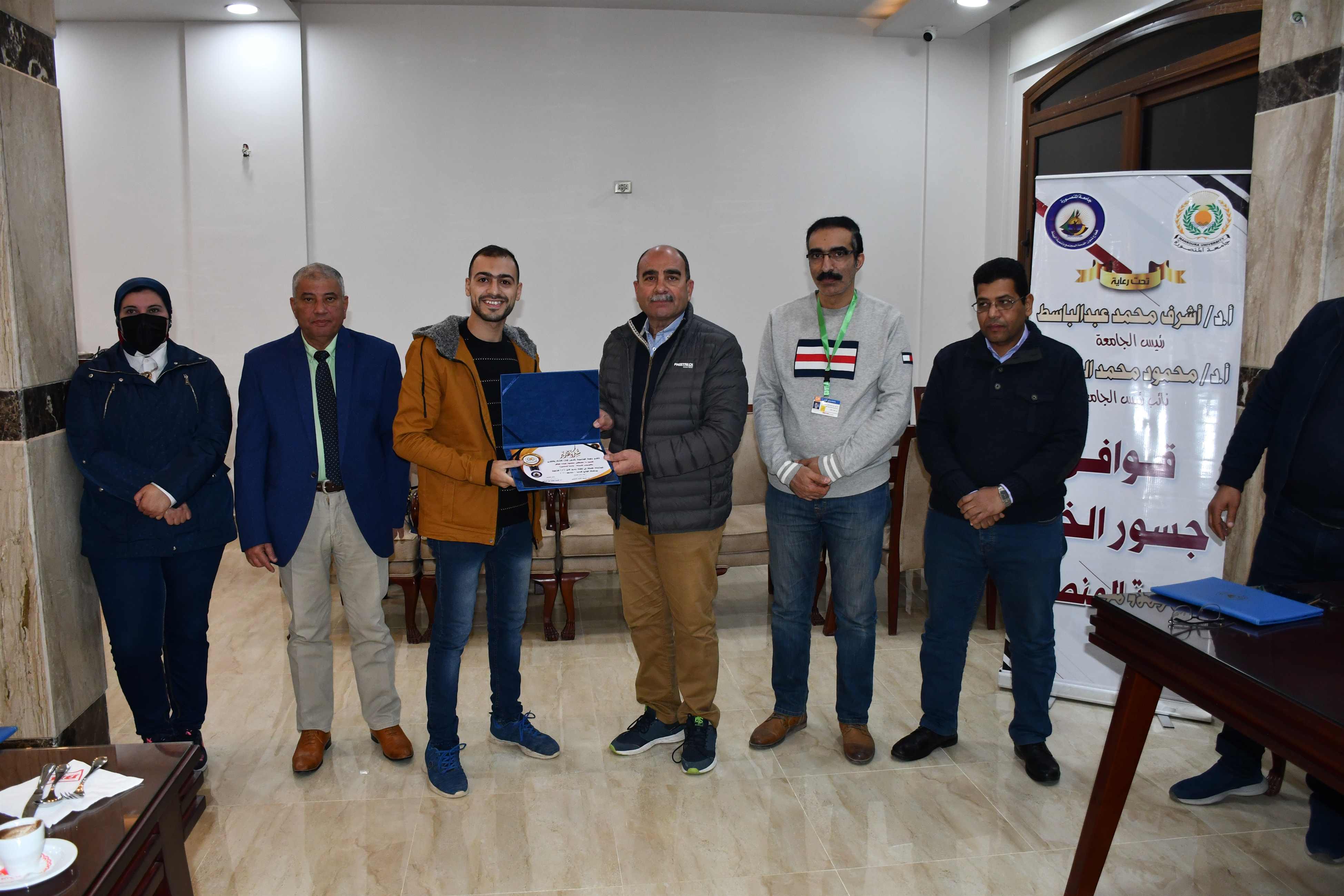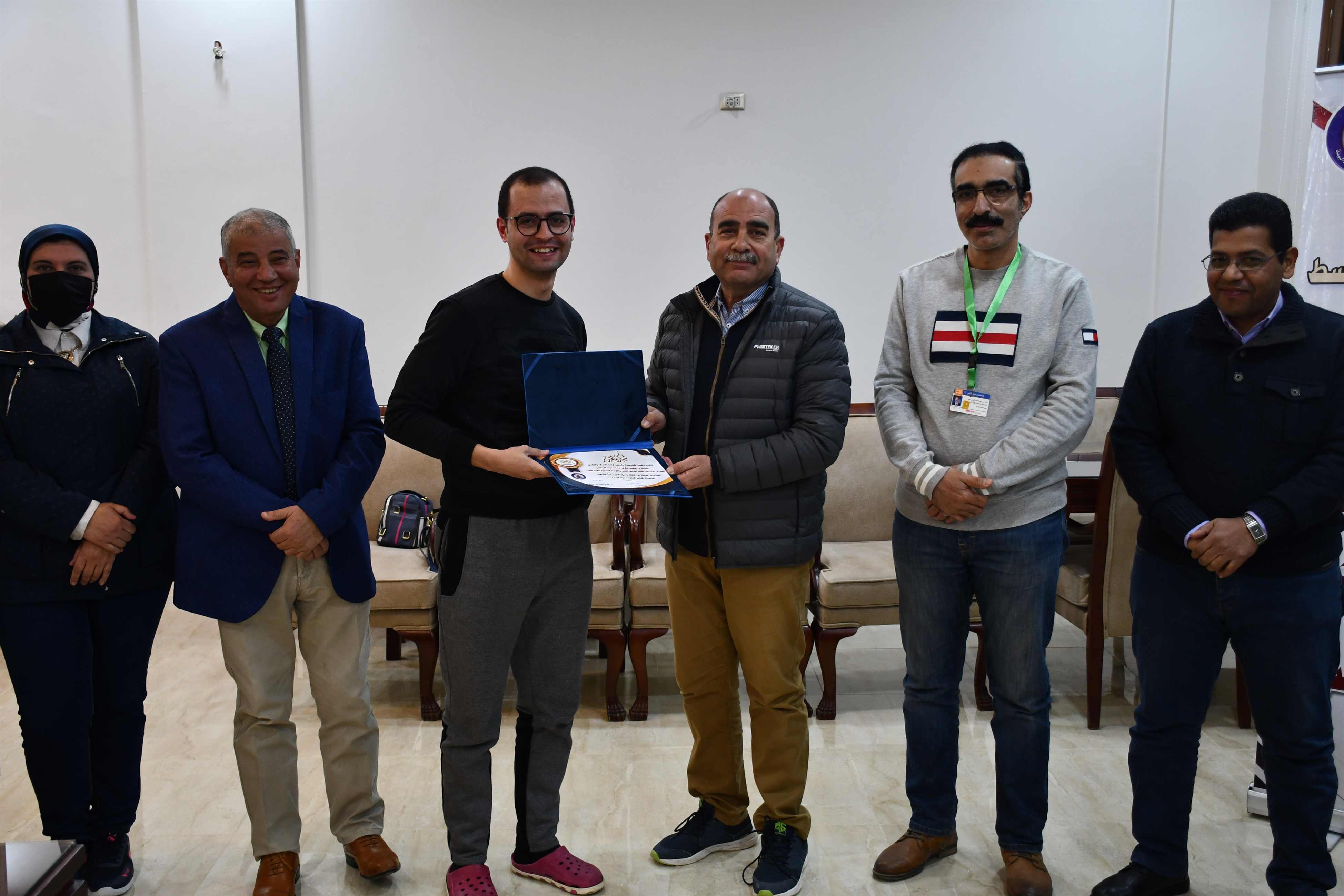 قام السيد أ.د/ محمود المليجي بتكريم السادة أعضاء القافلة من فريق الطب البشري والطب البيطري والصيادلة وفريق مركز رعاية وتنمية الطفولة والإداريين نظراً لما قدموه من جهود عظيمة ساهمت في نجاح فعاليات القافلة، والمكون من السادة التالي أسمائهم: -