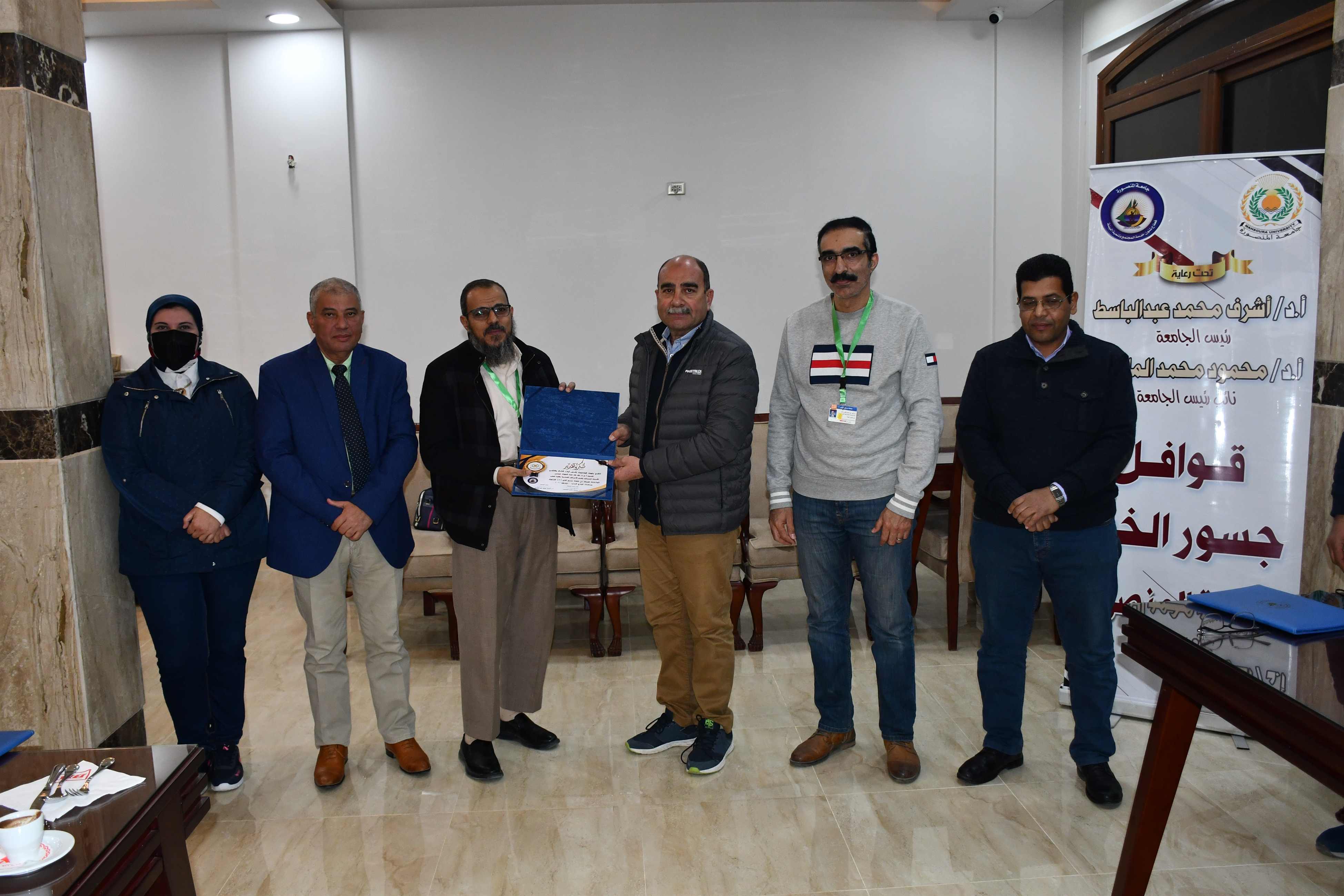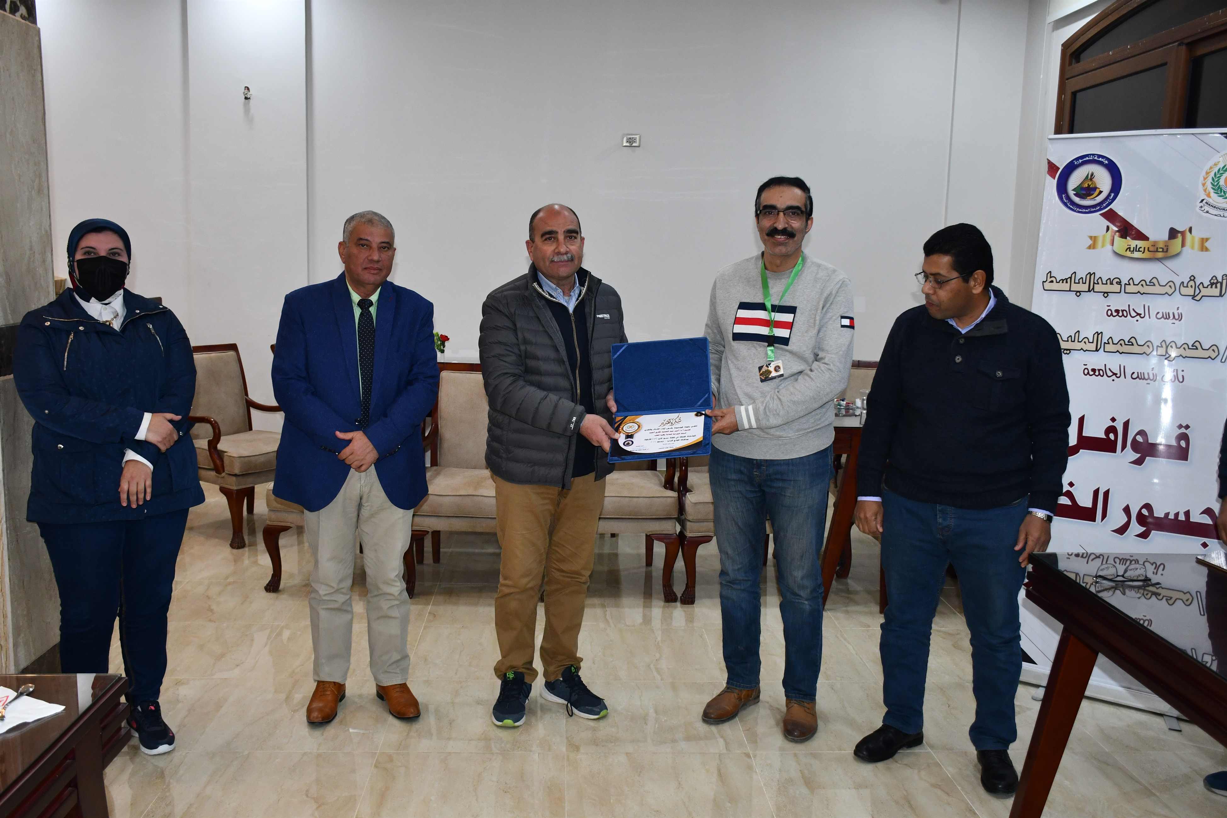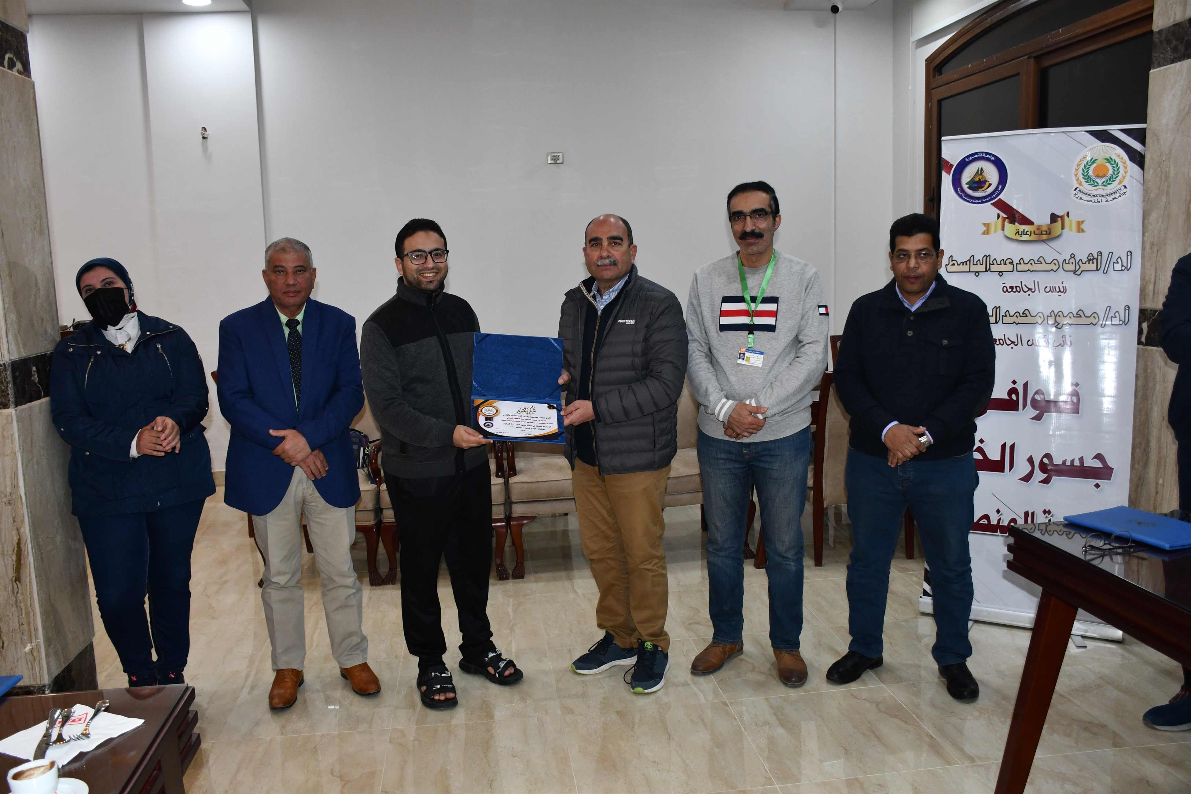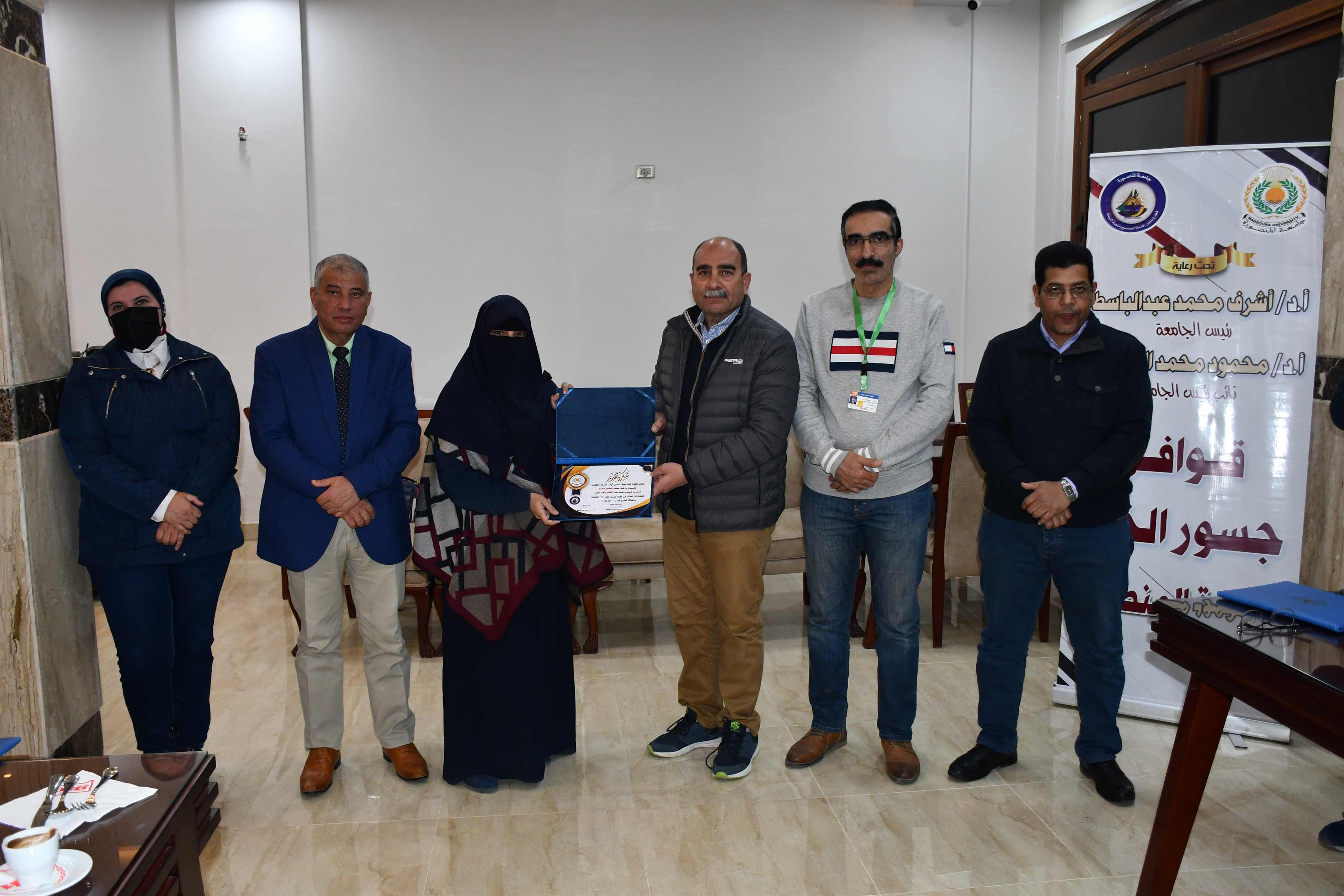 في ختام فعاليات قافلة جسور الخير (13) الشاملة التي نظمتها جامعة المنصورة بواحتي الخارجة والداخلة بمحافظة الوادي الجديد خلال الفترة من 25 – 30 ديسمبر 2021م لتوفير الرعاية الصحية والخدمات المُتكاملة في مجال الطب البشري والبيطري وتنمية ورعاية الطفولة تحت رعاية السيد أ.د/ أشرف عبد الباسط – رئيس جامعة المنصورة، والسيد اللواء/ محمد الزملوط – محافظ الوادي الجديد، وبرئاسة السيد أ.د/ محمود المليجي - نائب رئيس الجامعة لشئون خدمة المجتمع وتنمية البيئة.