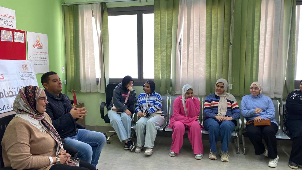 جلسة حوارية توعوية تحت عنوان "أخطار الإدمان وتأثيره على الفرد والمجتمع" ببيت التطوع بجامعة المنصورة
