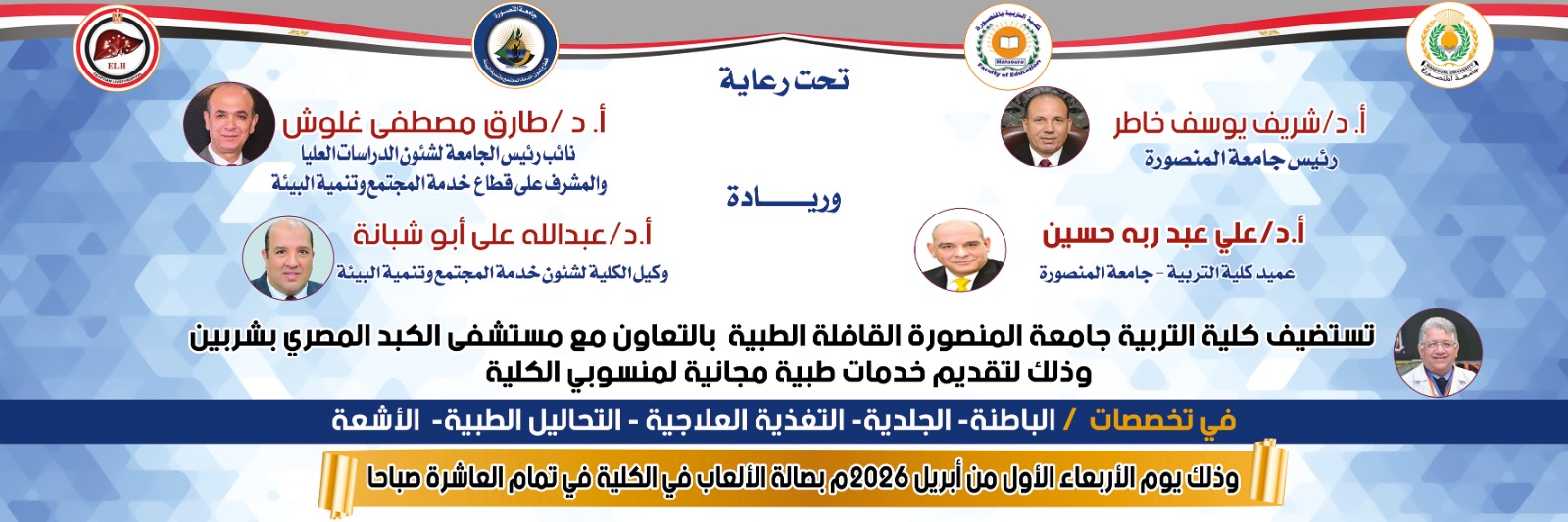 في إطار الدور المجتمعي والإنساني، وتنفيذًا لرؤية نشر الوعي الصحي بين أفراد المجتمع الجامعي، تم تنظيم قافلة طبية متميزة لمنسوبي كلية التربية، بالتعاون مع جمعية مرضى الكبد بشربين.