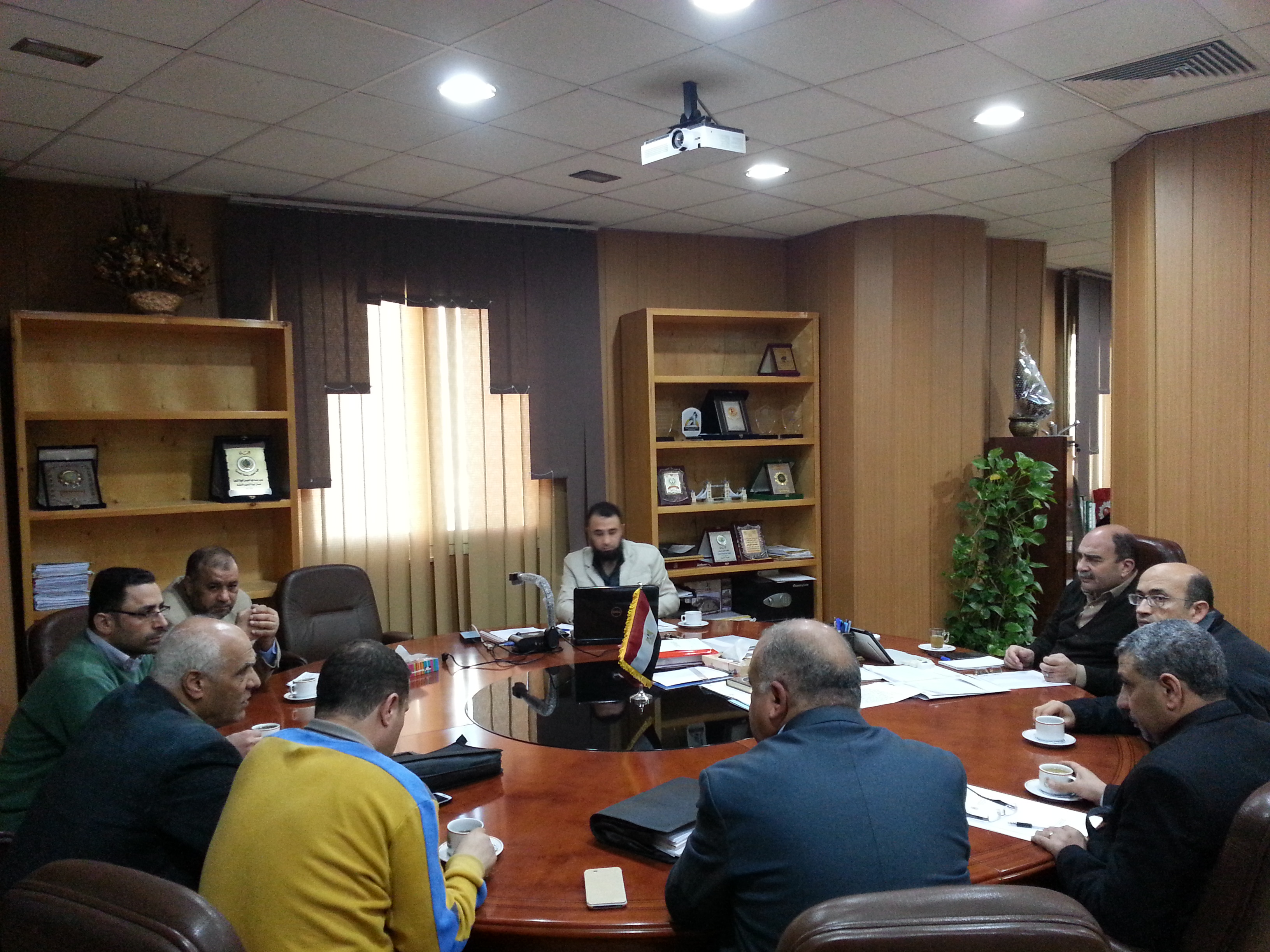 اجتماع متابعة سير العمل للجنة المكلفة بإعداد المخططات والمقايسات ومستندات الطرح اللازمة لصيانة شبكة المياه والحريق بجامعة المنصورة